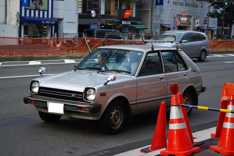 仮店舗の紀ノ国屋の駐車場待ちで並んでたスターレット。