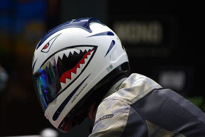 サメみたいなデザインのメット。バイクは元自民党員が作った新党くらい中途半端な848でした。